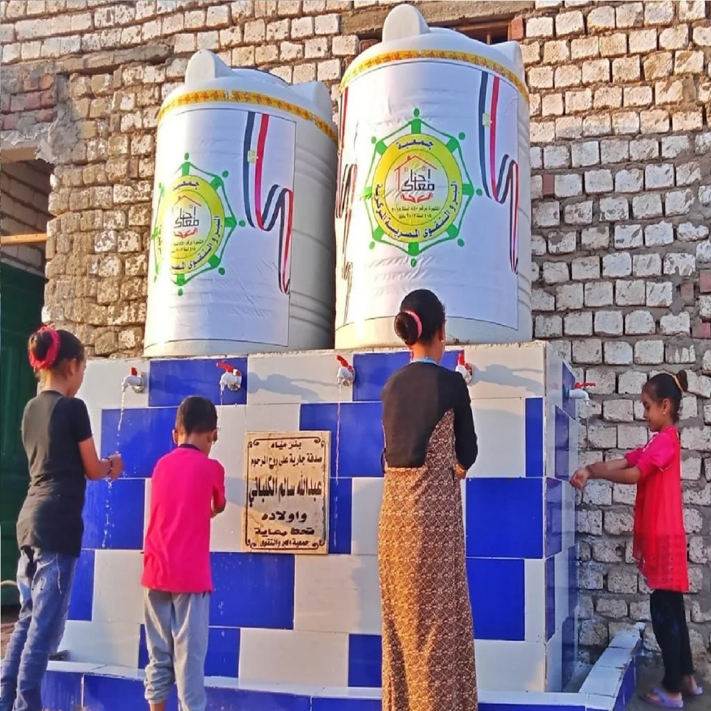 يوجد قرى لم تصل إليها المياه مما يدفع أهالي هذه القرى للخروج إلى أماكن نائية تصل إلى 5 كيلو متر للحصول على المياه لذا عملت الجمعية على تلبية هذا الاحتياج من خلال عمل طلمبة مياه وآبار للمياه الجوفية وصولا لمياه نقية للشرب يخدم البئر منطقة سكنية بأكملها كما تم عمل وصلة مياه للمنازل و كانت معظم هذه الأعمال بمحافظات سيناء وبنى سويف وقنا